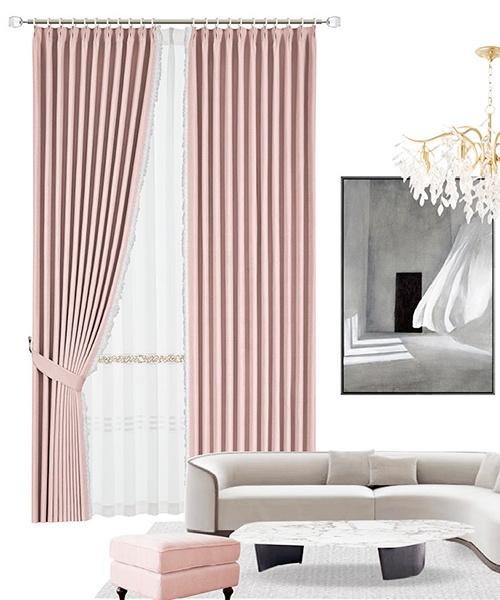 層疊的水波紗與嬌嫩櫻花粉仿佛初入宮廷的少女裙擺,生機與優(yōu)雅同行,讓空間也明媚起來